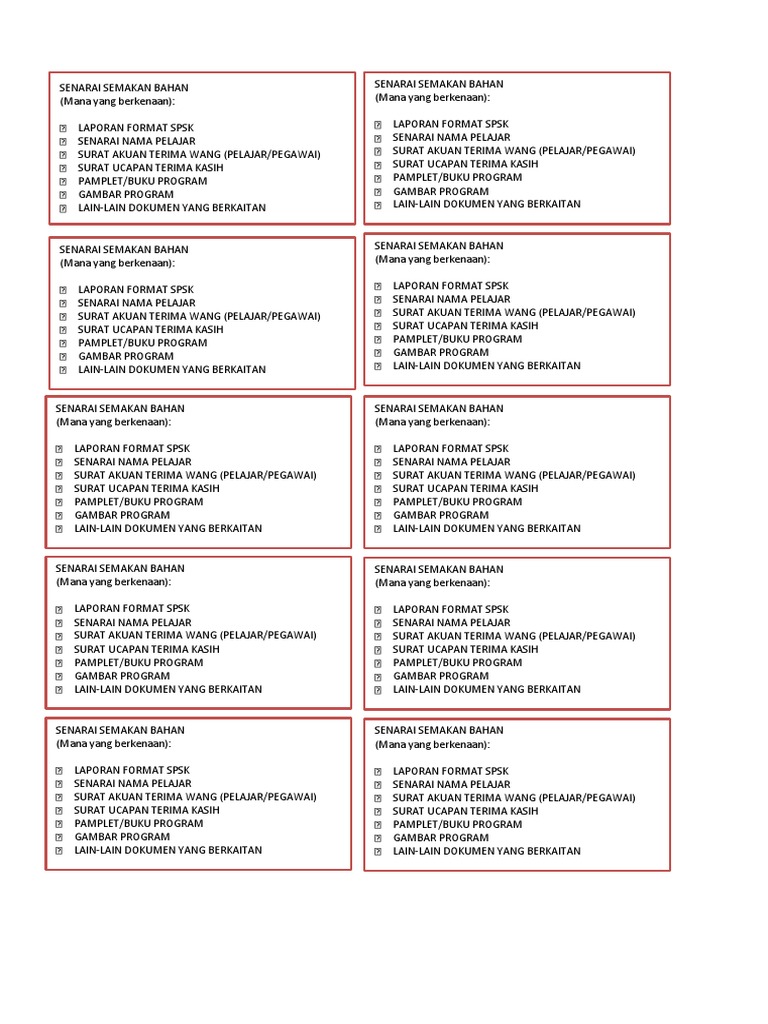 Senarai Semak Bahan Laporan Pdf